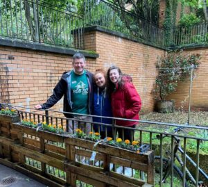 The team cut back hedges, cutting the grass in the front garden, laid bark chips down and planted pots and window boxes. They were joined by a couple of the residents who helped with the plant potting. The Quarrier’s Support team was left in a very positive mood as they talked about barbeques and other social gatherings in the tidied up space.