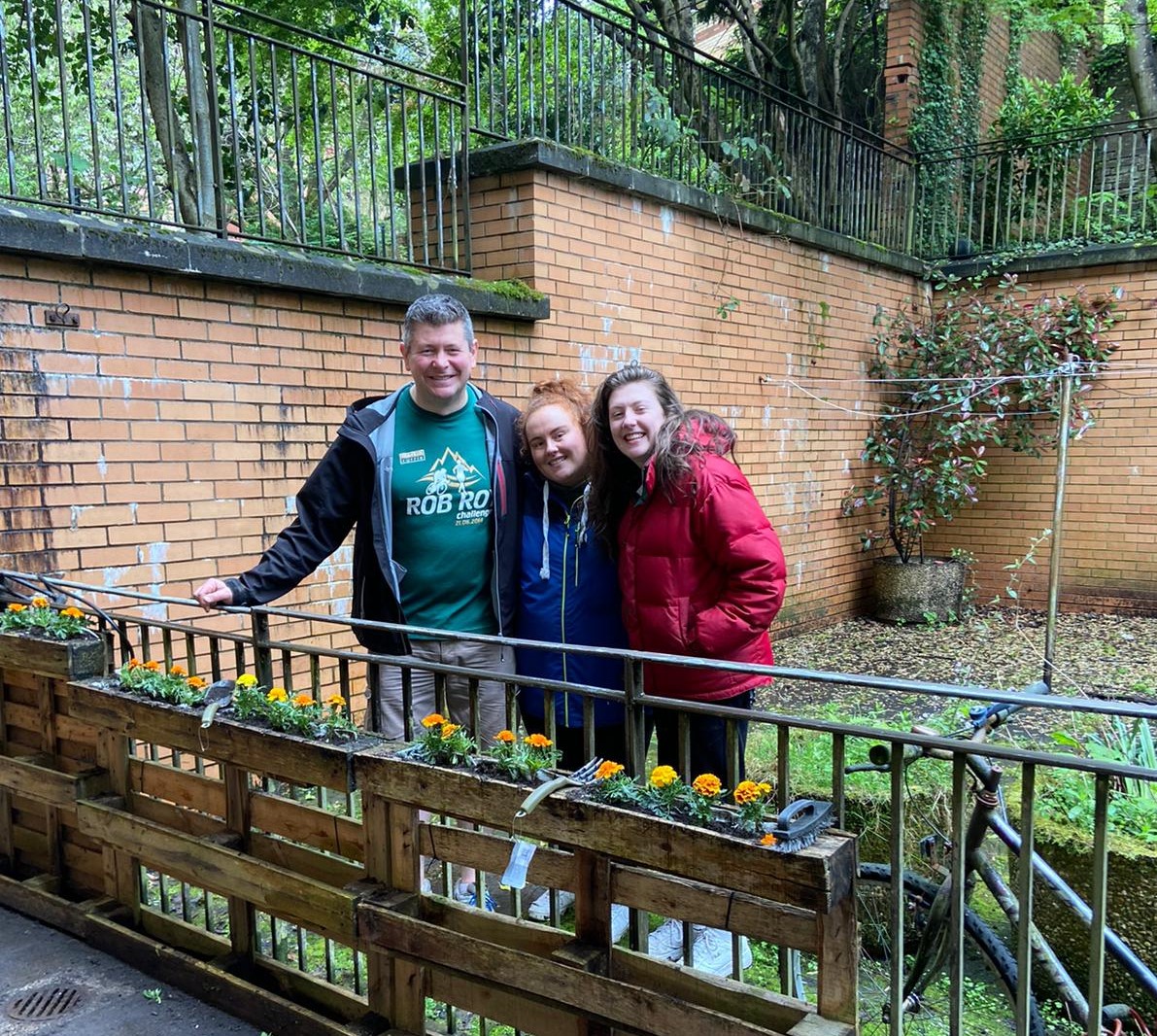On Friday another two groups from across the business performing gardening duties to allow greater use of residencies in Maryhill and Knightswood for Quarrier’s service users. Unfortunately, the weather was typically Scottish, but that was all part of the challenge.