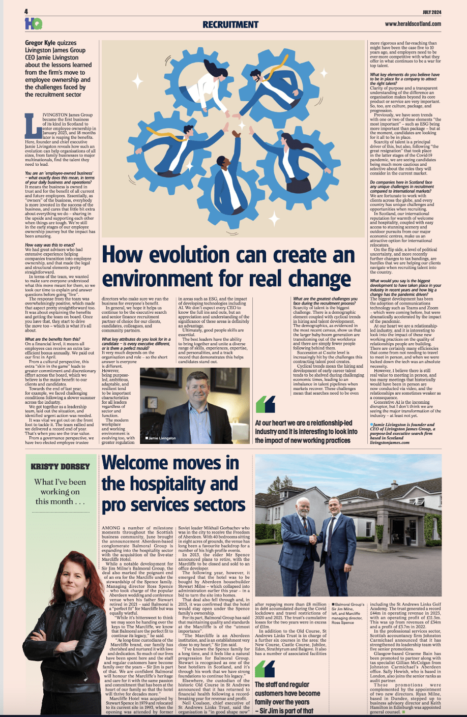 Our Group CEO, Jamie Livingston, recently published an article discussing the lessons learned from Livingston James Group moving to employee ownership, including some of the challenges currently facing the recruitment sector in Scotland.